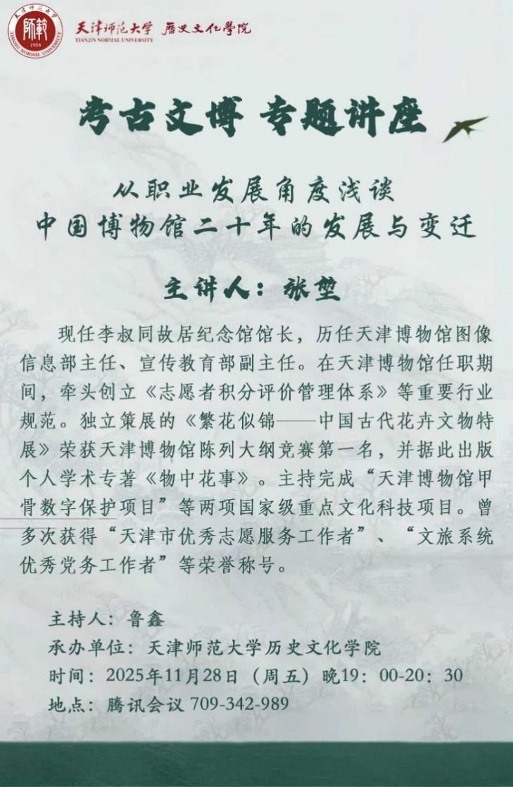 为充分发挥行业导师的指导作用,拓展文博专业学生学术眼界,明确未来继续深造与就业方向,2025年11月25日至29日,伟德betvlctor1946先后邀请3位行业导师为文博专业的本科生带来三场以“考古文博行业前沿暨人才需求”为专题的线上讲座。