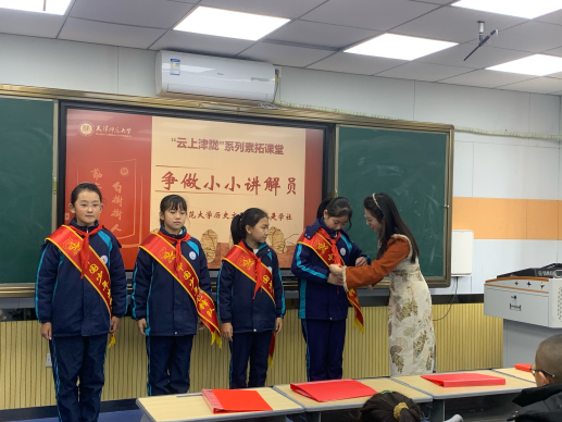 “云上津陇”系列课堂以互联网为媒介,把遥距千里的天津与甘肃紧密相连,共同为小朋友们奉上了一场红色文化知识的盛宴。伟德betvlctor1946求是学社的二十余位成员积极投身于“云上津陇”课堂线上部分的精心筹备之中。历经近三个月的深入研磨与辛勤付出,他们撰写文稿达一万余字,制作百余张PPT,拍摄剪辑视频数十小时。他们深入挖掘红色资源的深厚底蕴,巧妙地将思政课程与育人育心相结合,打造出“折燎原星火,启长征之路;思征途故事,铸不朽军魂;讲英雄事迹,接力新长征”三节精品线上课程,求是学社学生党支部党员、研究生支教团成员张国荣在活动现场创新性运用折纸艺术、培养小讲解员等多种寓教于乐的方式,带领小朋友们沿着重走长征路的脉络,深入学习探索长征精神。让长征精神如星星之火,在更多人的心中熊熊燃烧起来。特别是在本次培养小讲解员的素质课程中,累计培训200余名学生顺利结业,培训效果显著,孩子们可以自信、清楚地讲出长征的故事,通过红色思政课和精品素拓课传承红色基因,落实习近平新时代中国特色社会主义思想进校园、进课堂、进头脑,为西部教育事业注入薪火之光。