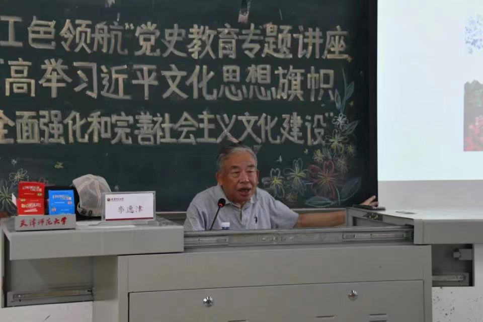 为深入学习习近平新时代中国特色社会主义思想和党的二十大精神,加强党对青年的思想政治引导,伟德betvlctor1946于5月16日,开展了以“高举习近平文化思想旗帜,全面强化和完善社会主义文化建设”为主题的党史教育专题讲座。本次讲座的主讲人是我校关工委副主任李逸津教授。伟德betvlctor1946第69期积极分子及院“青马工程”培训班学员参与了此次活动。