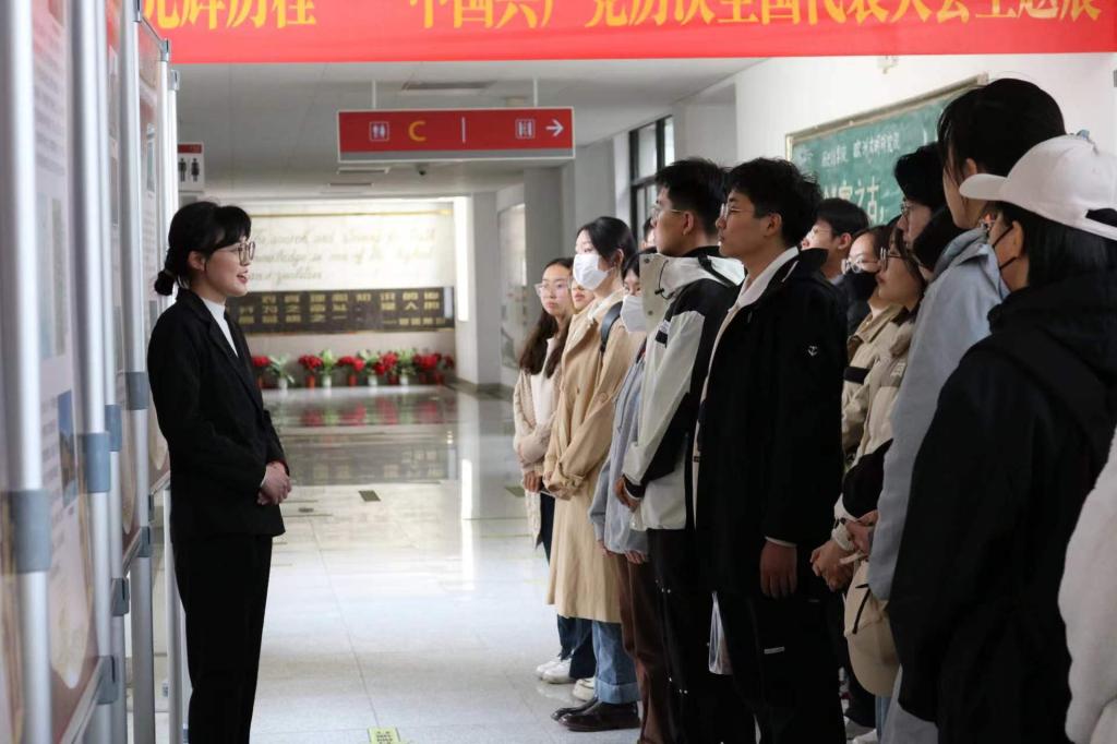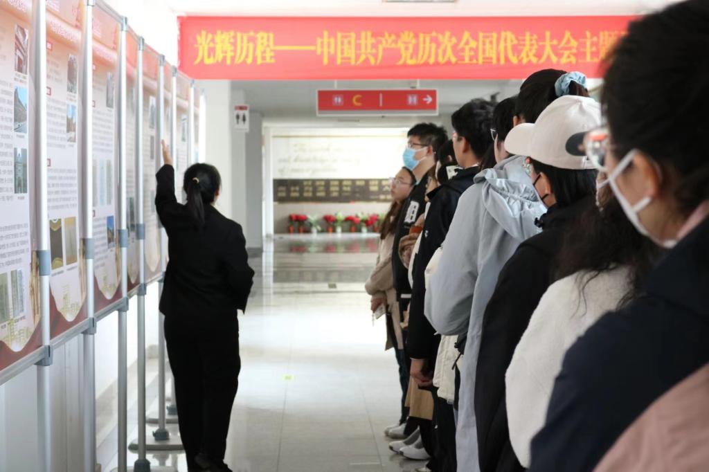 三位讲解员结合史料史实及相关图片,从中国共产党历次全国代表大会回顾党的百年伟业,回望党的光辉历程,使同学们深刻认识到中国共产党全国代表大会是党的发展历程中的标志性事件,是党的重要历史节点。中国共产党百年来始终坚持以马克思主义为指导,坚持从中国国情出发,不断探索并开创民族复兴的伟大道路,书写了中华民族几千年来最恢宏壮阔的史诗。