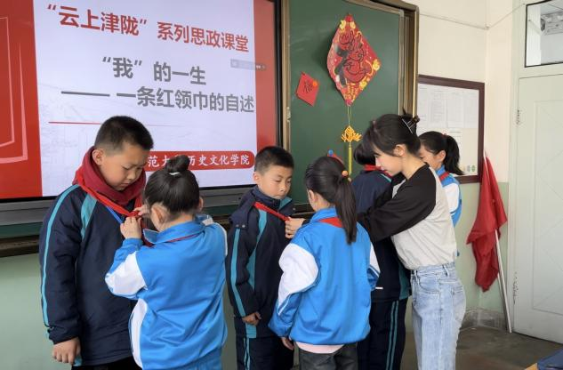 看着小朋友们认真听讲的模样,积极举手互动,本次“云上津陇”课堂主讲人李怡茗表示:“很荣幸能有机会参加本次‘云上津陇’思政课堂,为小朋友们带来生动有趣、新颖易懂的红色历史知识。当我看见小朋友们举起胸前的红领巾骄傲地说:‘我一定会好好爱护红领巾’,看到屏幕里一双双求知的眼睛,我感受到了红色文化传承的力量,对西部支教的意义有了更加深刻的认识,我也将会继续发扬志愿服务精神,尽自己所能将爱国主义教育带入更深更远的地方。”