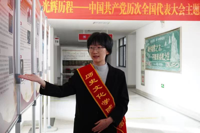 三位讲解员通过介绍一些珍贵的历史图片和相关史事,声情并茂地讲述了中国共产党历次全国代表大会的主要内容。回望过往的奋斗路,从播下革命火种的小小“红船”到领航复兴伟业的巍巍“巨轮”,中国共产党一路走来披荆斩棘、筚路蓝缕。百年奋斗历程,中国共产党团结带领全国各族人民,以“为有牺牲多壮志,敢教日月换新天”的大无畏气概,书写了中华民族几千年历史上最恢宏的史诗。
