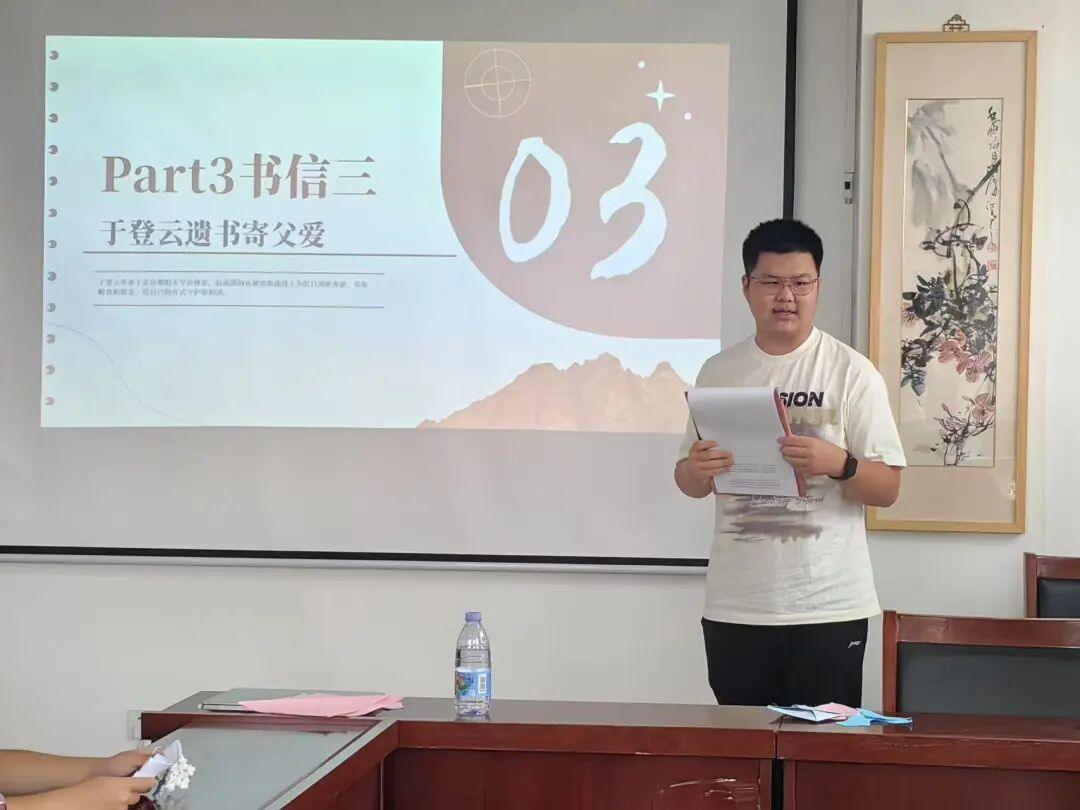 为重温抗战岁月,感悟英雄精神,求是学社成员精心策划“时光宝盒里的英雄密码”主题环节。活动中,成员们展示了卢玉兰奶奶守护鸡毛信的感人故事,诠释了保密纪律与责任担当;讲述孩子剧团悼念抗宣队员的信件,彰显少年儿童的敬仰与勇气;分享于登云狱中遗书,传递对家人的切咛与对国家的眷恋;解读吉鸿昌将军绝笔信,体现舍生取义的家国大义。这些书信不仅是历史的见证,更成为连接亲情与信仰的永恒桥梁,让青少年在沉浸式学习中深刻领悟抗战精神的时代价值。
